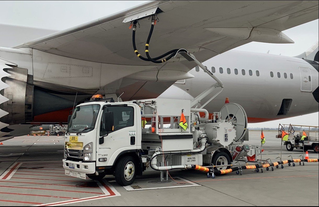 The image displays a cockpit interior of an old aircraft with detailed gauges and a leather-trimmed dashboard. Overhead, two vintage biplanes with yellow wings are suspended in a hangar. The planes feature military markings and insignia, and the wing of one shows a 'FUEL 46 GALS.' label.